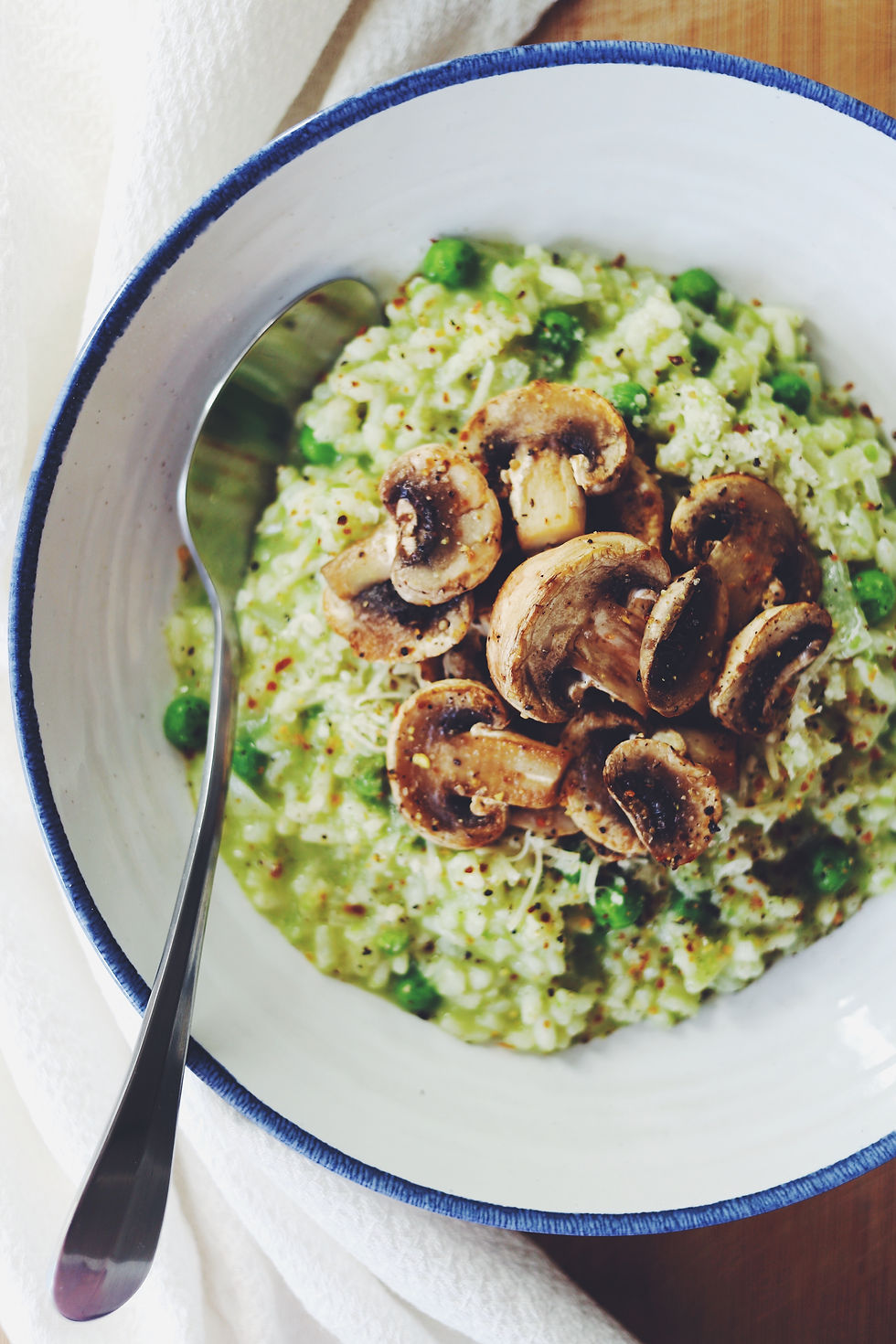 RISOTO ROHELISTE HERNESTE JA RÖSTITUD ŠAMPINJONIDEGA