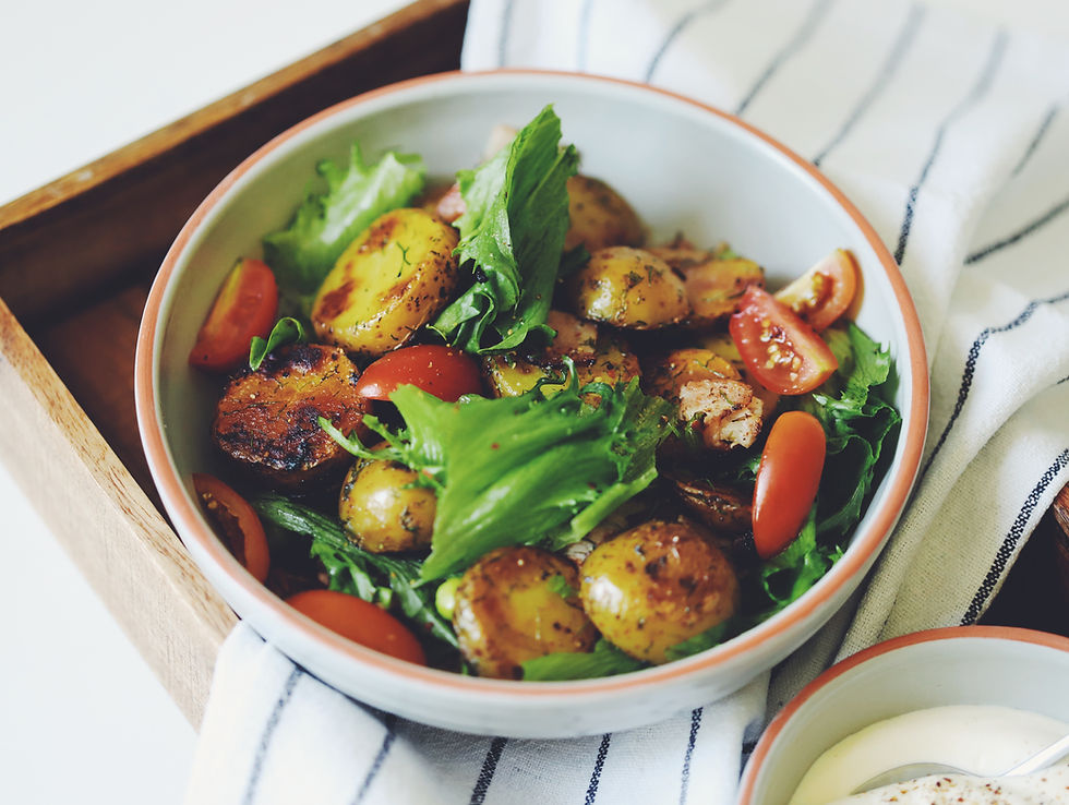 Sega kartulitele, peekonile ja hernestele juurde kress salat ja kaste.